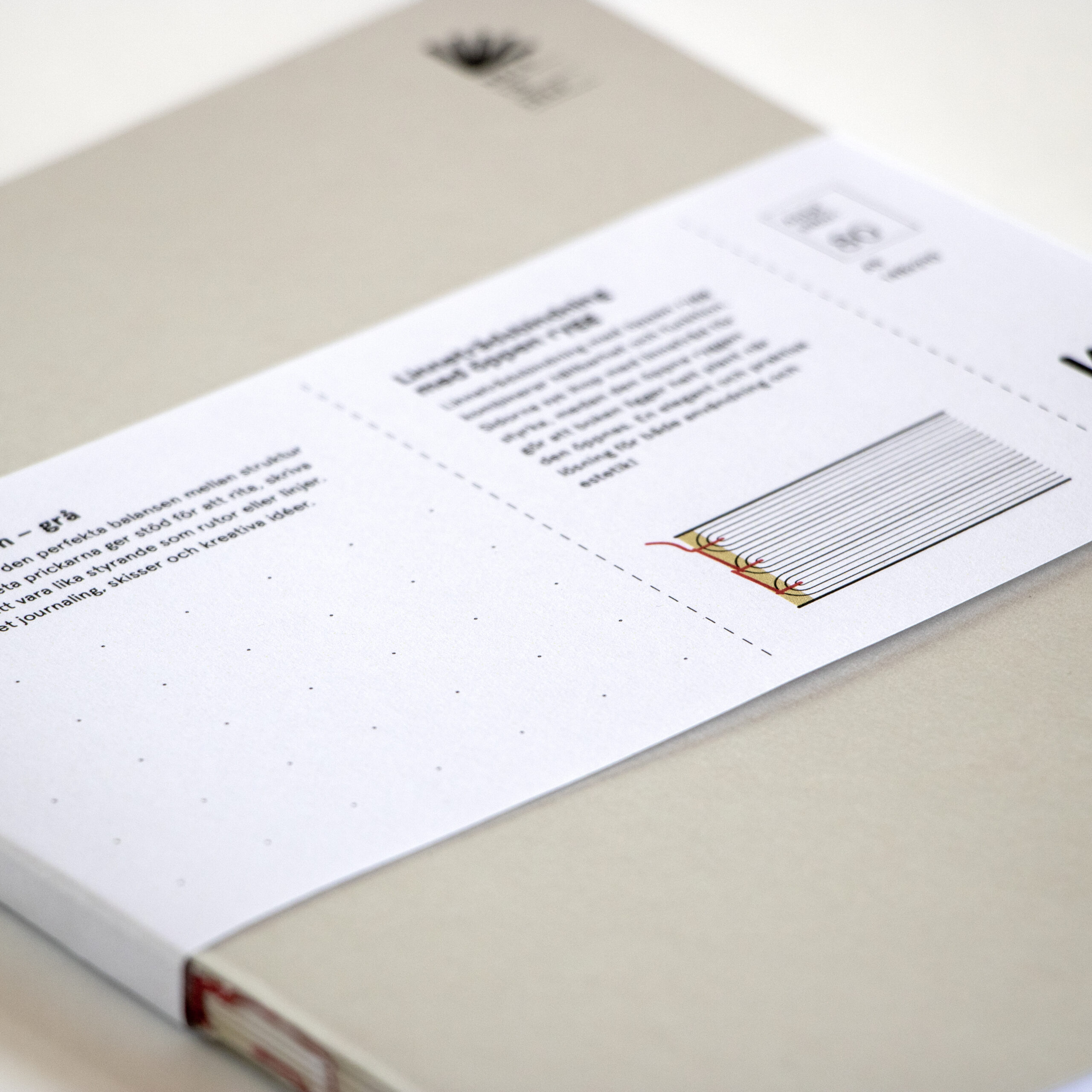 Bindning: Linnetrådsbindning med öppen rygg. Denna bindning kombinerar hållbarhet och funktion. Sidorna sys ihop med linnetråd för styrka, medan den öppna ryggen gör att boken ligger helt plant när den öppnas. En elegant och praktisk lösning för både användning och estetik!